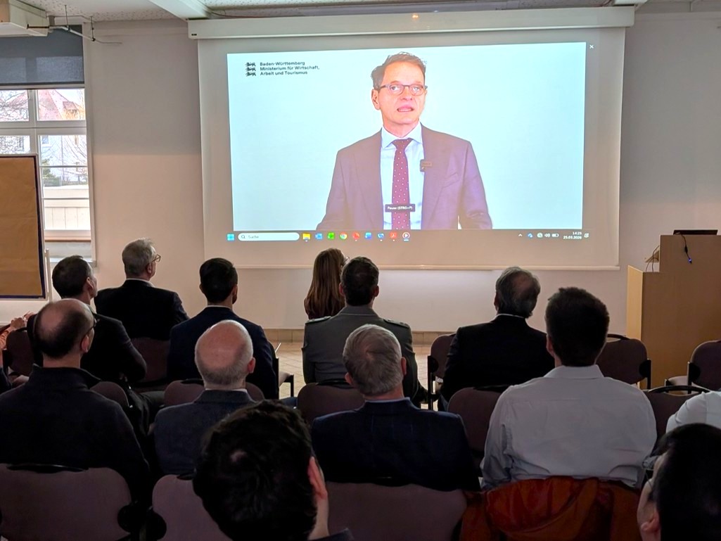 Nach einer Begrüßung durch die AG-Moderatoren Dr. Karin Stein, Fraunhofer IOSB, und Jens Möller, Diehl Defence GmbH & Co. KG, erfolgte ein Videogrußwort von Ministerialdirektor Dr. Michael Kleiner vom Ministerium für Wirtschaft, Arbeit und Tourismus Baden-Württemberg.
